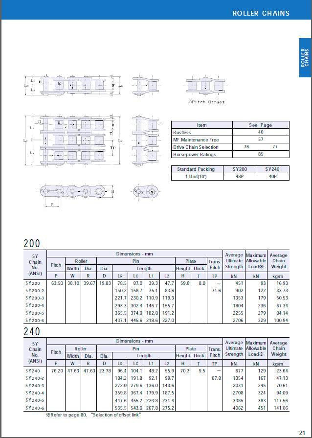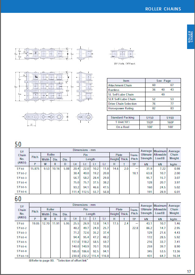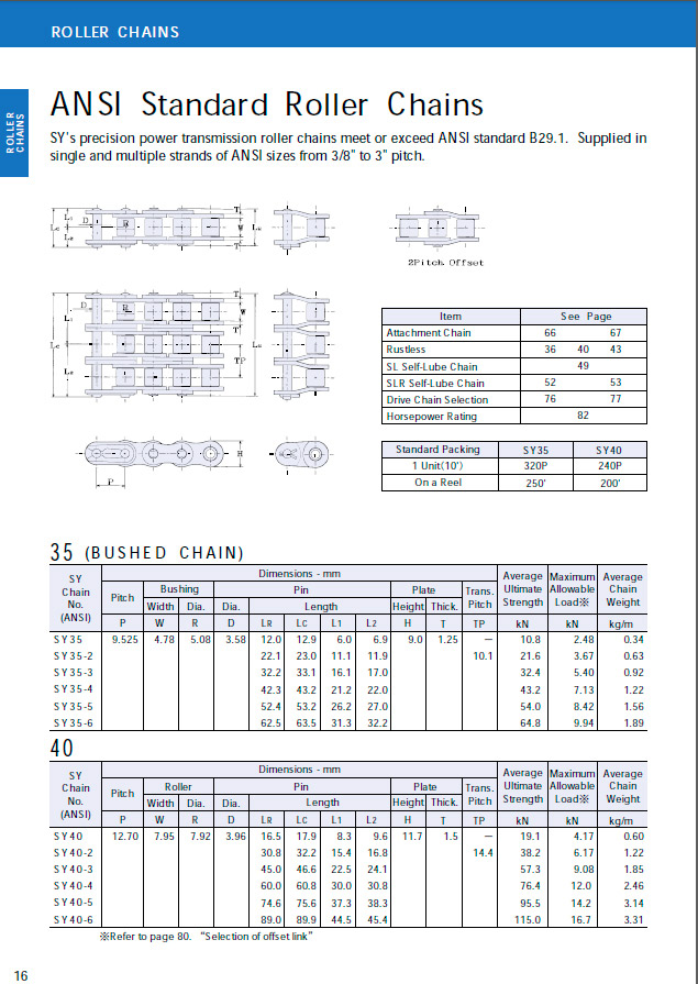 Sugiyama, Euroket, standardi, rullaketjut, ANSI, B29.1, kokoluokka ”3/8″ – ”3”