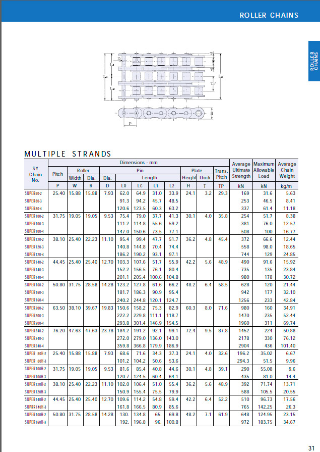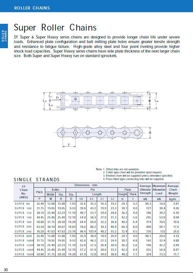 Sugiyama Super ja Super Heavy rullaketjusarjat on suunniteltu antamaan pidemmän ketjun eliniän ankarien kuormitusten alaisuudessa. Parannettu levyjen kokoonpano ja kuulapainetut reiät takaavat suuren vetolujuuden ja vastuksen väsymisvaurioille. Korkealaatuinen seostamaton teräs ja neljän pisteen niittaus tarjoaa suuremman iskunkestävyyden. Super Heavy ketjusarjan sivulevyjen paksuus on seuraavan suuremman ketjusarjan kokoa. Kummatkin Super ja Super Heavy toimii normaaleissa ketjupyörissä.